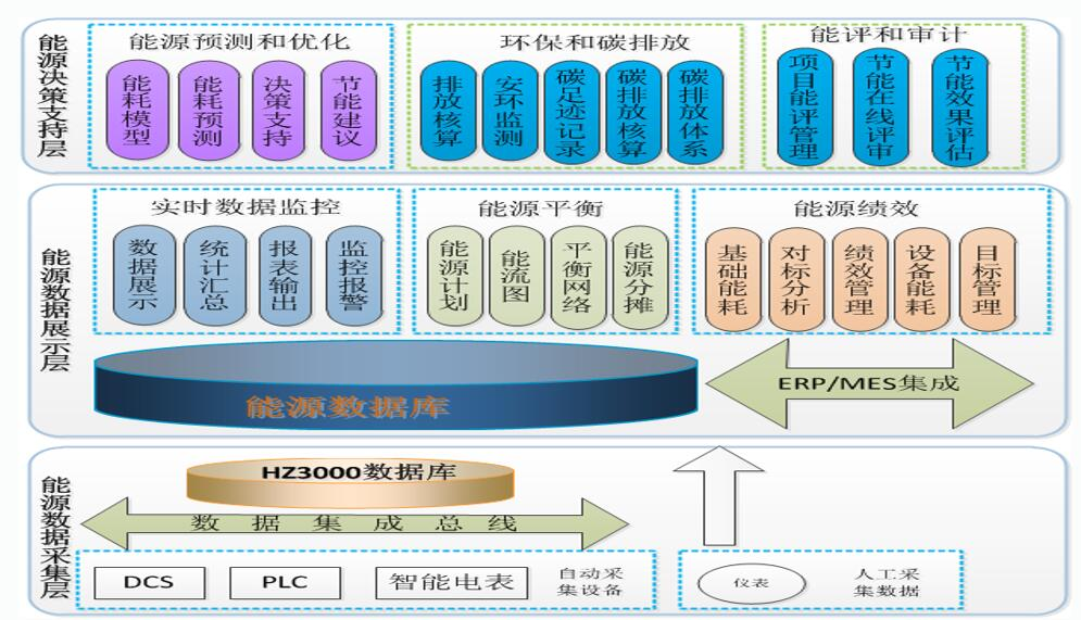 南南铝能源管理系统,利用由 DCS、智能仪表等设备组成现场采集网络采集中厚板、冷轧、熔铸、挤压等车间的电量、水量等各类实时数据,通过光纤通讯网络接入能源管控中心,并对数据进行存储、转换、统计及分析,实现能源管控。能源管控中心的建设,实现了能源全流程管控一体化,带动能管理突破传统模式进入信息化时代。通过集中管控、优化操作,显著提高能源管理水平,在全厂范围内实现能源系统的稳定可靠运行。