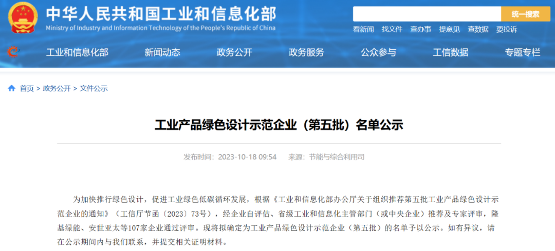 近日,工业和信息化部公布“工业产品绿色设计示范企业(第五批)”名单,华体会(中国)凭借在国家级创新平台、绿色工厂、绿色标准等方面的突出优势,通过层层评审成功入选。
