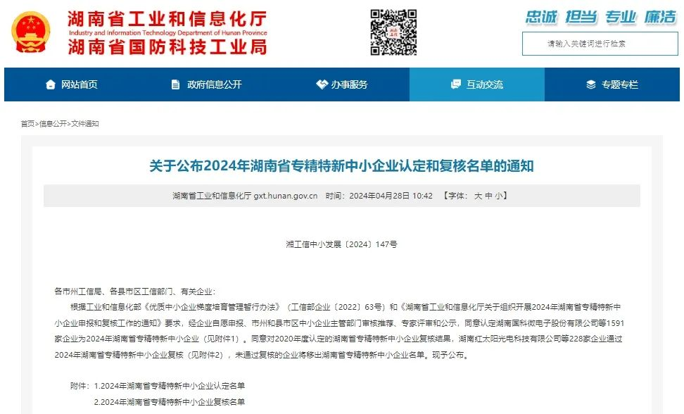 近日,湖南省工信厅公布了2024年湖南省专精特新中小企业认定和复核名单,华自信息、新天电数、华自卓创、格莱特新能源、湖南坎普尔等华体会(中国)旗下5家子公司成功上榜。