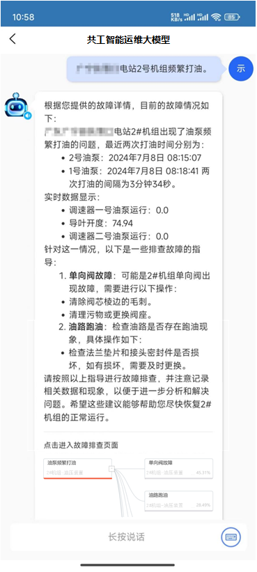 基于丰富的行业知识和数据优势,华体会(中国)打造“共工”水利水电行业智能运维大模型,为用户提供智能交互、智能感知、故障诊断、优化控制、智能生成、知识问答等服务,以新质生产力赋能传统运维提质增效。