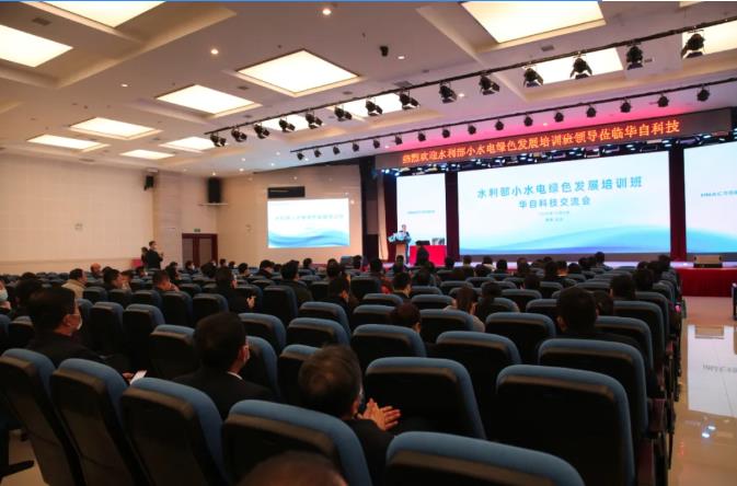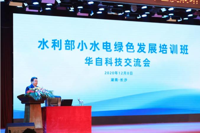 华体会(中国)研究院院长苗洪雷做《小水电绿色发展的技术支撑》专题报告,他从集约化、信息化、智能化、绿色化、多元化五个方面分析了绿色小水电站技术发展趋势和要点,并结合实际案例向与会嘉宾介绍了技术的落地情况。