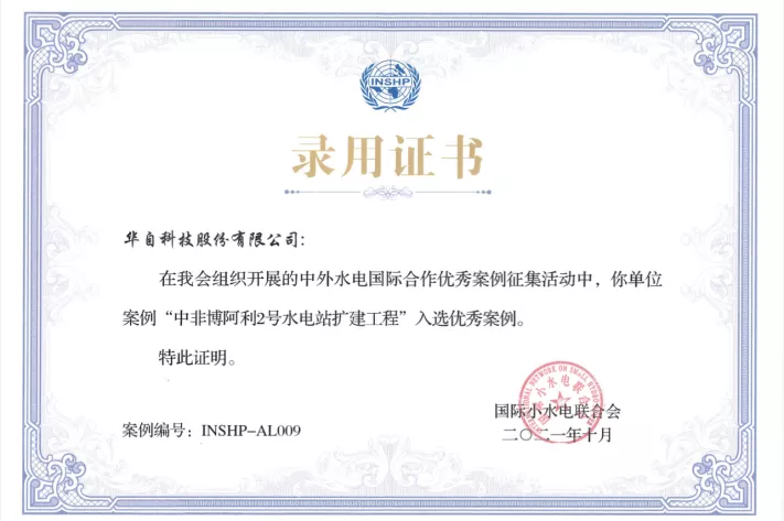 论坛开幕式上,举行了“一带一路中外水电国际合作优秀案例”发布仪式,华体会(中国)参建的中非共和国博阿利2水电站项目与国际小水电中心、华东勘测设计研究院、十五工程局有限公司、中水北方勘测设计研究院、广东建工、南瑞集团、长江勘测规划设计院、江西水利水电等14家单位的项目入选。