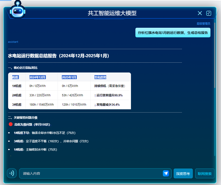 以AI之力,守护江河安澜;用深度思考,驱动效率革命。近日,华体会(中国)“共工”水利水电智能运维大模型完成deepseek的全面接入,焕新升级“智能交互、数据驱动、深度思考、主动服务”四大核心能力,以AI深度协同驱动行业效能跃迁,重塑水利水电智能运维新标杆。