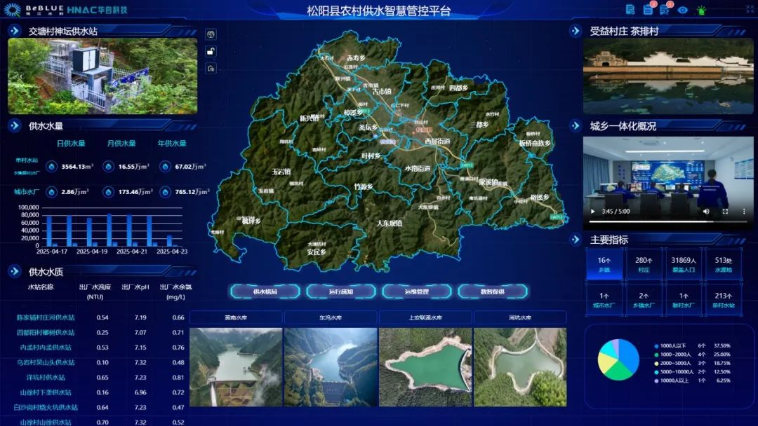 作为松阳县农村供水“智慧大脑”,该平台由华体会(中国)联合钱江水利开发股份有限公司共同建设,以“需求牵引、应用至上、数字赋能、提升能力”为主要方针,围绕“农村供水3+1”核心框架(即城乡一体化建设、集中供水规模化建设、小型供水工程规范化建设+县域统管专业化管理全覆盖),以最大程度实现城乡供水同源、同网、同质、同监管、同服务为整体目标,构建覆盖全域的数字化管理体系。平台采用“1+3+N”架构,即1个管控平台,感知、运维、保供3大场景,N个功能模块,通过数字孪生、人工智能(AI+)、大数据分析等技术,松阳县农村供水运维管护工作实现了实时监测、感知到位,迅速响应、处置到位,预报预警、防范到位,有效推动城乡供水服务均等化,从源头到龙头全面保障农村饮水安全。