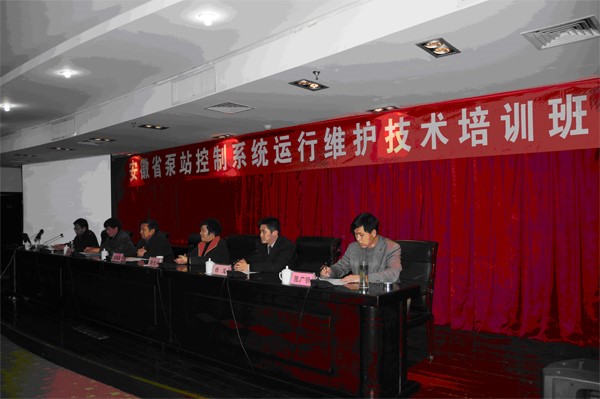 2012年 11月20日,由安徽省水利学会机电排灌总站专业委员会主办,凤台县水利局与华体会官方版网站登录入口协办的“安徽省泵站控制系统运行与维护技术培训班”在安徽省淮南凤台县举行。省水利 厅科技处调研员夏恒文、省机电排灌总站总工程师朱华明、凤台县人大副主任周德明、永幸河灌区管理处主任陈广明以及我公司工控事业部总经理杨成出席并主持了培训班的开班仪式。