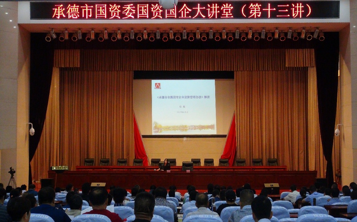 本次大讲堂由市国资委党委委员、副主任陈宏同志主持,市国资委监事会主席张楠同志向参会人员介绍了我市印发的《承德市市属国有企业监督管理办法》具体要求,并对该办法进行了详细解读;我公司总会计师赵俊华同志就融资工作进行了讲解,并向参会人员分享了球友会在融资活动中的经验。