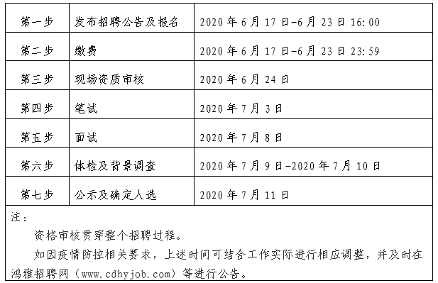 2020 年6 月 17日至 2020 年6月 23 日 16:00 在鸿雅招聘网(http://www.cdhyjob.com/)、鸿雅微信公众号、球友会官方网站等发布招聘公告。