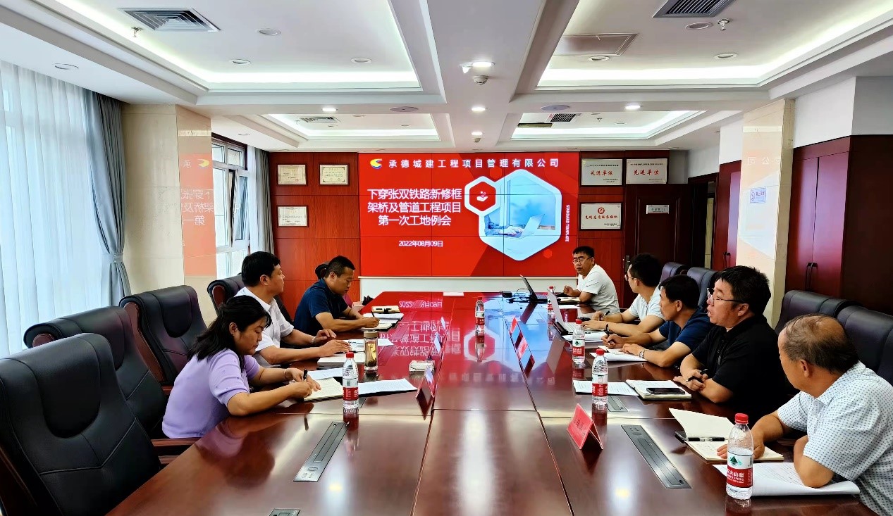 2022年8月9日上午,承德市国瑞置业有限公司在国控大厦十二层第一会议室组织召开下穿张双铁路新修框架桥及管道工程项目第一次例会。市球友会总经理徐俊儒、国瑞置业公司董事长胡杰出席会议。