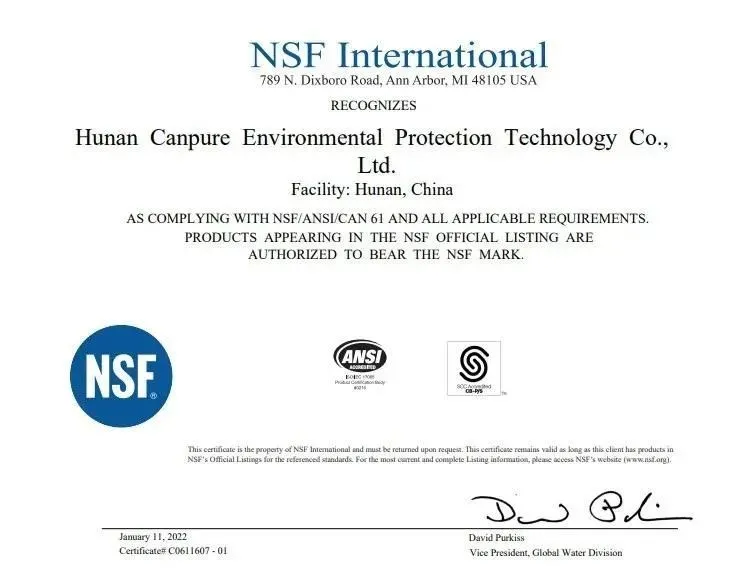 【转载】坎普尔外压超滤产品通过美国NSF认证检测