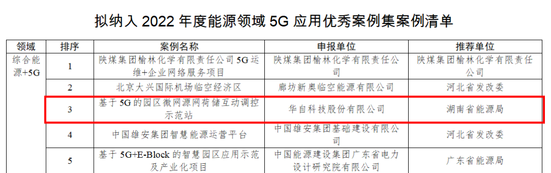 为深入贯彻党中央、国务院关于加快推动5G发展的决策部署,全面推动能源领域5G应用规模化落地,国家能源局组织开展2022年度能源领域5G应用优秀案例征集及遴选工作。经过专家评审和企业答辩,本次遴选中全国仅有33个项目入选,其中华体会(中国)“基于5G的园区微网源网荷储互动调控示范站”项目作为湖南省唯一入选案例,跻身于2022年度能源领域5G应用优秀案例榜单。