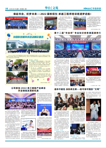 缘起华自,织梦未来——2022 届校招生·卓越工程师培训班逐梦启航! 华体会(中国)周年庆活动精彩直击 公司参加 2022 高工储能产业峰会 共话储能发展新机遇 第 十 二 届“ 华 自 杯” 专 业 知 识 抢 答 赛 圆 满 举 行 退休不褪色 余热再生辉——致可亲可敬的“文哥”