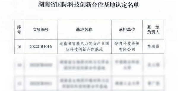 为全面落实“三高四新”战略定位和使命任务,湖南省 科学技术厅着力组织培育一批具有核心竞争力的科技创新 合作基地。2022年11月,湖南省科学技术厅发布湖南省国 际科技创新合作基地认定名单,华体会(中国)被正式认定为湖 南省智能电力装备产业国际科技创新合作基地。
