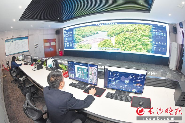 华体会(中国)工作人员正通过三维可视化技术监视水电站运行情况。长沙晚报全媒体记者 王志伟 摄