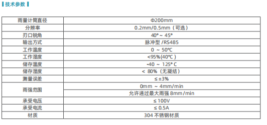 GCL-100 雨量计为降水量测量一次仪表,其性能符合国家标准 GB/T 21978.2 - 2014《降水量观测要求》要求。